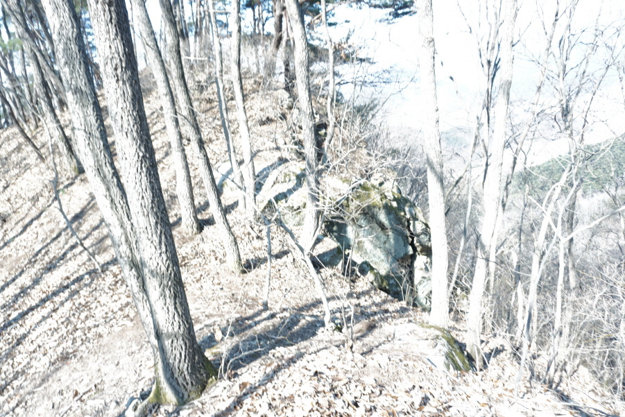 (12;22) 촛대봉 이후 연결되는 능선에 있는 몇 개의 영양가 없는 무명봉을 오르내린 후 90도 좌향 해야 하는 241봉입니다.