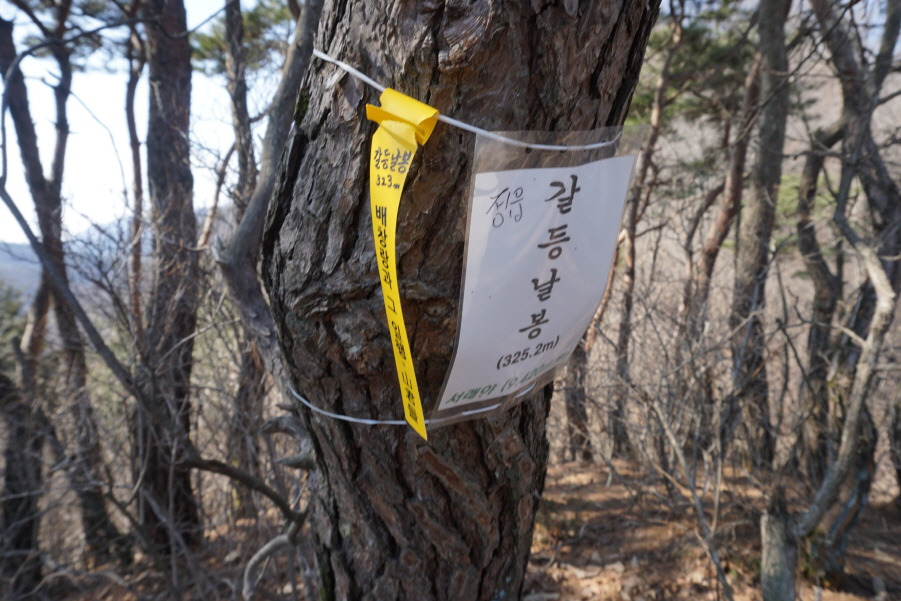 (11;40) 갈등날봉(323m) 정상 인증사진입니다.