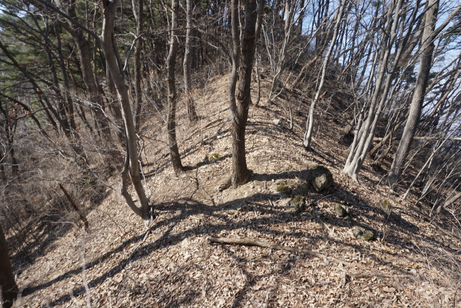 (14;26)독계봉에서 90도 우향 급경사 내리막길 엉금엉금 조심해서 기어 내려온 후 만난 능선입니다