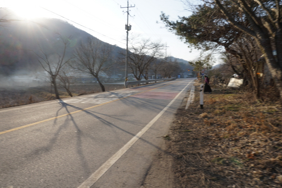 12;51독계봉 들머리입니다. 도로사면을 내려서 개천을 건너 임도 조금 따르다가 좌측 능선을 치고 오릅니다