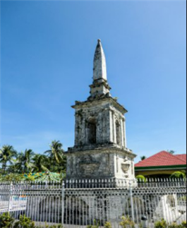 필리핀 막탄섬에 마젤란 기념비와 라푸 라푸 동상