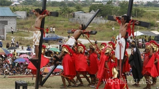 필리핀은 인구의 약 90%가 기독교이고, 그 중 80%가 로마 카톨릭 신자들이며, 아시아에서 가장 큰 카톨릭 국가이며, 필리핀에서의 카톨릭은 그 문화에 맞게 변형된 요소도 있다. 일부 외국인들의 입장에서는 극단적으로 보이는 부분이 지금도 매년 성 금요일에 일부 카톨릭 신자들은 속죄의 의미로 자신을 채찍질하고, 몇 명은 실제로 십자가에 못박히기도 한다.