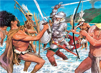 ▲ 마젤란, 라푸 라푸 부족과의 전투장면