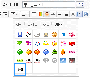 카페 글쓰기에서 에디터 상단의 이모티콘 버튼을 누르시고, <기타>를 선택하시면