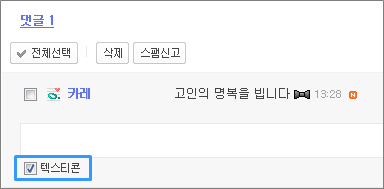 댓글 내용에서 자동으로 검은 리본 텍스티콘이 보이게 됩니다.