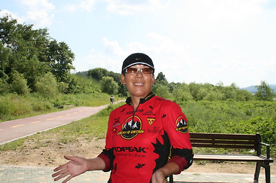 "거 아줌마 자전거 상당히 잘타시네 우리 네명이 뒤에서 쫓아오다 힘들어 말붙입니다"