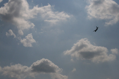 큰 소리와 함께 전투기가 서울공항에 착륙하려하네요