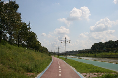 아무튼 시원하게 흐르는 개천을 따라 쭉쭉 뻗은 자전거 도로를 달리고 달립니다