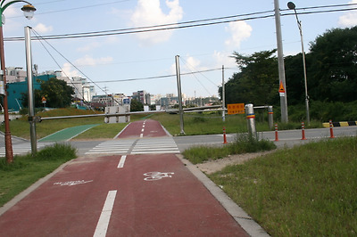 도로 건너 보니 가로막대만 건너면 자전거 도로로 진입할 수 있더군요