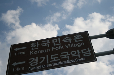 용인민속촌 안내판이 계속 보입니다. 그 안내판만 따라 밟고 밟습니다
