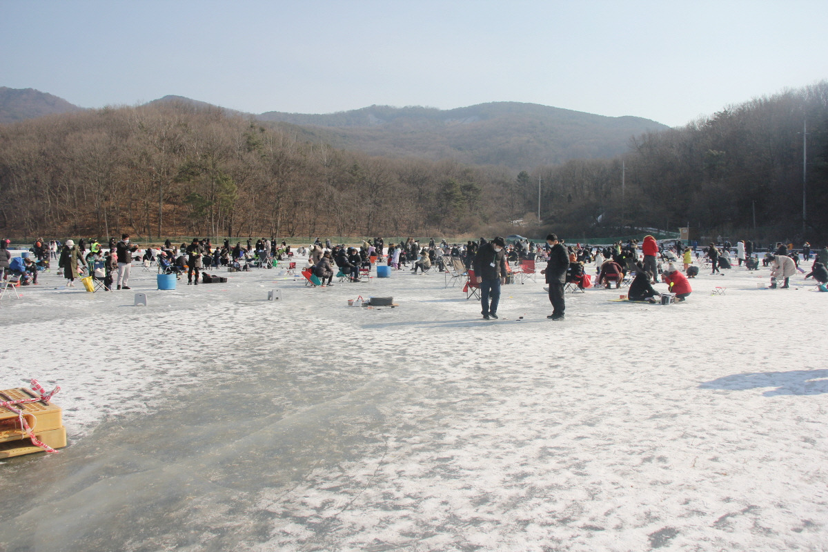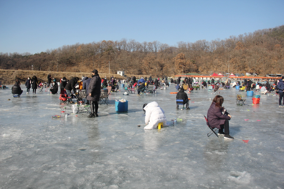 저수지에서 얼음낚시로 빙어 축제를 즐길 수 있는 곳이