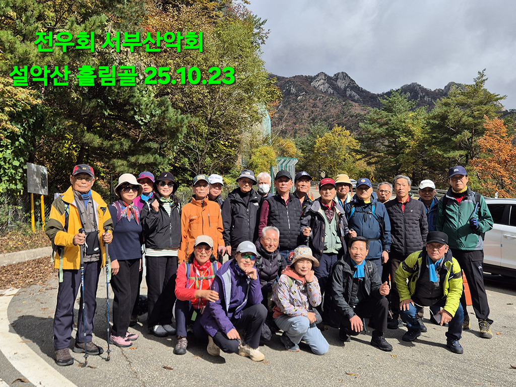 설악산 흘림골 등산 - 서부지회산악회 원정 24명 [2-1] 작성자호미|작성시간25.10.24|조회수25 목록 댓글 2 글자크기 작게가 글자크기 크게가 https://blog.kakaocdn.net/dn/cWTTEs/btsNa6ZbtXQ/ACJqyWA3r8tR2oQdwLCmtk/tfile.mp3나훈아 - 감격시대 다음검색 현재 게시글 추가 기능 열기 북마크 공유하기 신고 센터로 신고 댓글 댓글 2 댓글쓰기 댓글 리스트 작성자순담. | 작성시간 25.10.24 흘림골 걷는데도 16000보나 데는군요즐거운 걸음 붉게 물든 설악 제대로 구경혔겠습니다^^ 작성자혜명경 | 작성시간 25.10.25 오색으로 흐르는 계곡 물 소리 요란도 하지오멋집니다 구순설악산 등반 길 축하 드립니다 댓글 전체보기