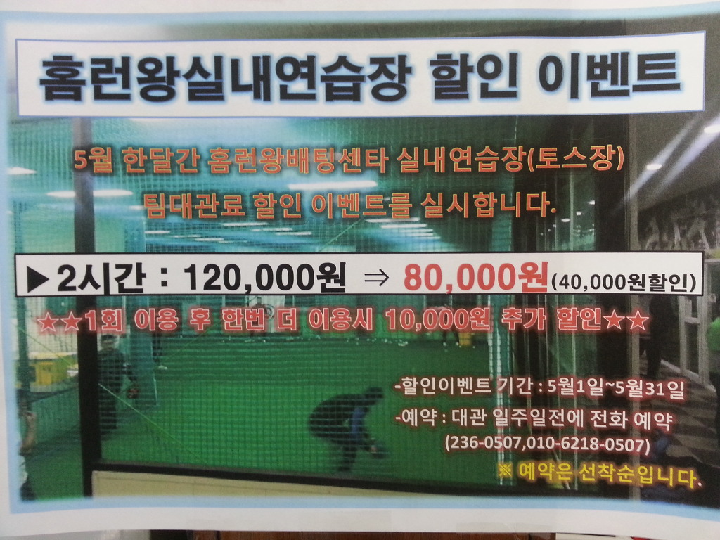 토스배팅장 5월 팀대관 할인 이벤트 작성자부르스|작성시간14.04.22|조회수587 목록 댓글 0 글자크기 작게가 글자크기 크게가 수원홈런왕배팅센타 실내연습장 5월 한달간 팀 대관에 한해서 할인 행사를 합니다.많은 이용 부탁드립니다.예약은 문자나 전화로만 가능합니다. 다음검색 현재 게시글 추가 기능 열기 북마크 공유하기 신고 센터로 신고 댓글 댓글 0 댓글쓰기 답글쓰기 댓글 리스트