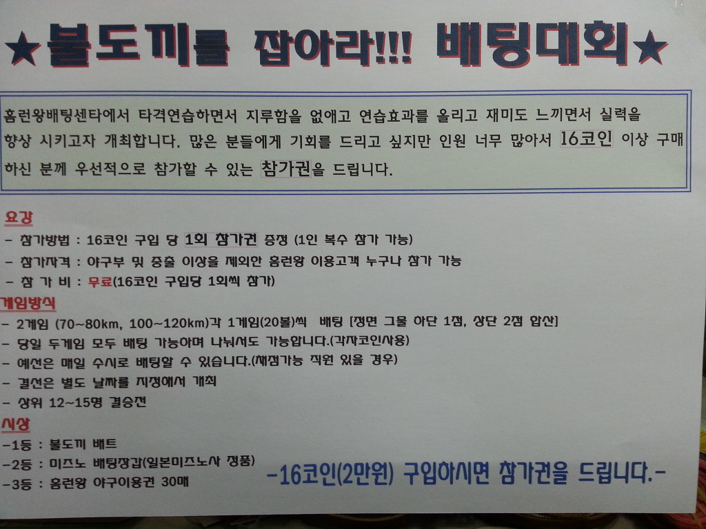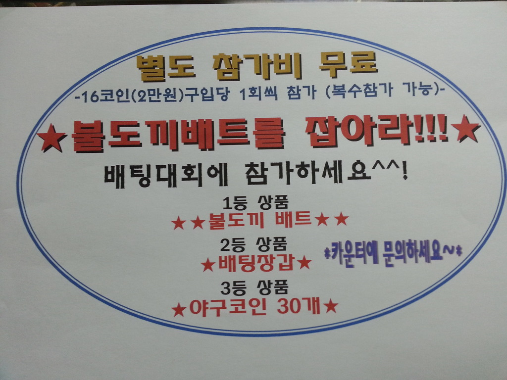 [종료]불도끼를잡아라!!!! 네번째 이벤트중입니다. 작성자부르스|작성시간15.12.12|조회수330 목록 댓글 0 글자크기 작게가 글자크기 크게가 홈런왕 배팅센타 겨울배팅대회에 참가하세요. 다음검색 현재 게시글 추가 기능 열기 북마크 공유하기 신고 센터로 신고 댓글 댓글 0 댓글쓰기 답글쓰기 댓글 리스트