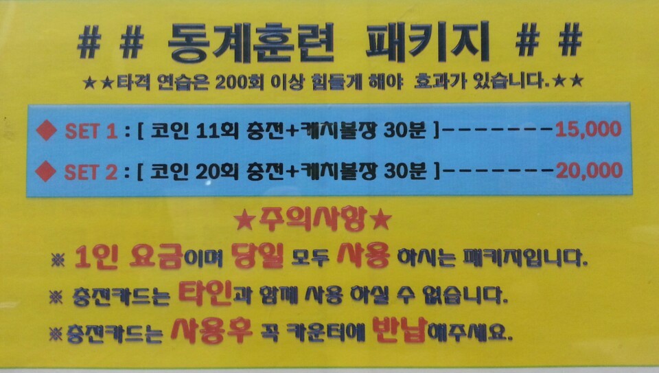 동계시즌 수원 홈런왕배팅센타에 날잡아 오셔서 배팅 연습하세요.겨울 동안만 한시적으로 시행하는 동계훈련패키지입니다.