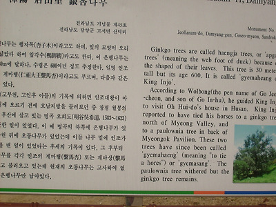 명옥헌 구경하고 다시 은행나무 앞에 도착하니 11시25분이다(내용은 사진에 수록되여 있서서 기록 안함)전에는 주위가