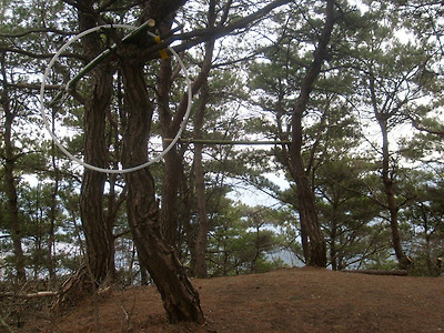 훌라호프도 있고 철봉이 않인 죽봉이(대나무) 소나무 두 구루 사이에 걸쳐 있다.매달릴수가 있다.두개다.