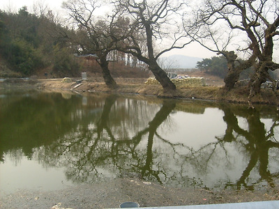 마을 옆에는 아담한 소류지가 있고 둑에는 미류나무가 운치 있게 휘어져 있는 정말로 감칠 맛이 나는 동네 였다.