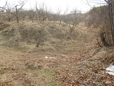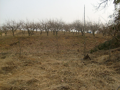 여기서 右로 꺽어 내려가면 철조망이 'ㅅ'자 형태로 올려진 출입문이다.개구멍?통과하니 매실 과수원이다.