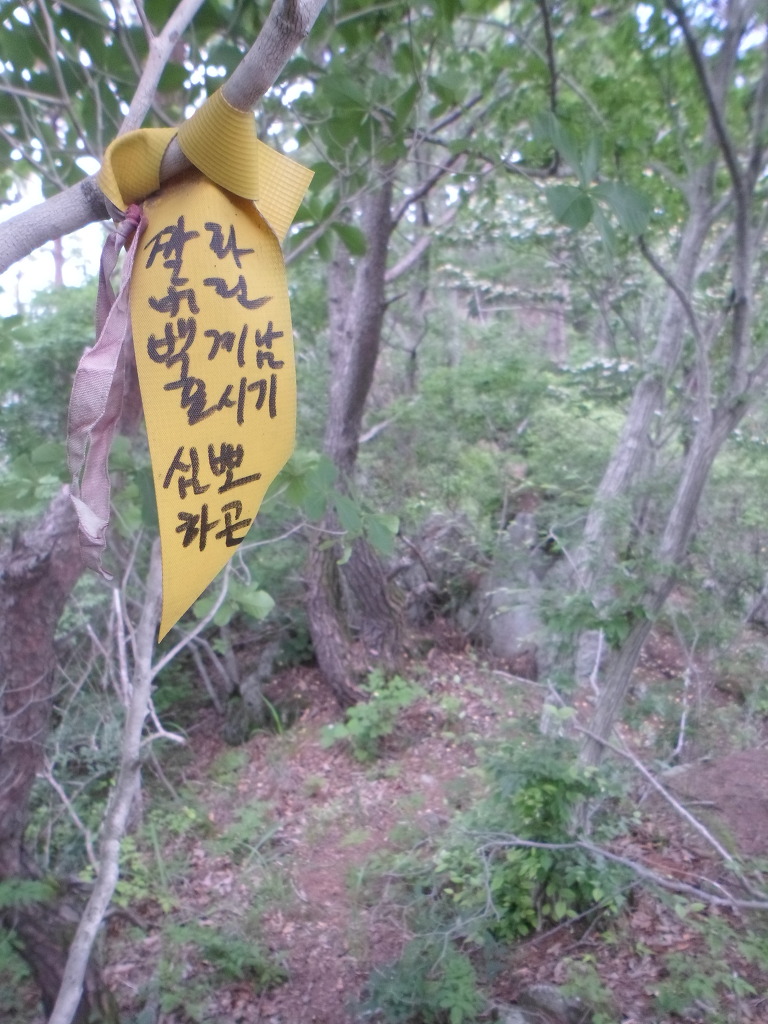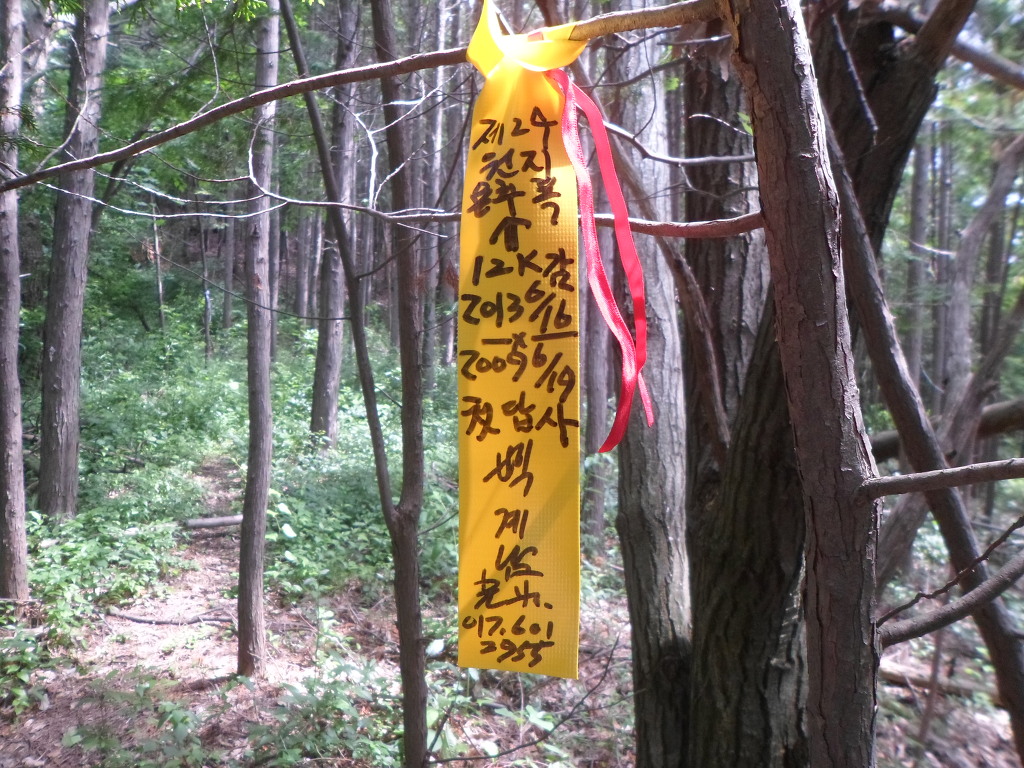 표시기 매달았는데 자꾸만 떼어 버리고 또 매달고 서너차례 하고 나니 등산로가 확실해서 매달기를 포기를 한다.
