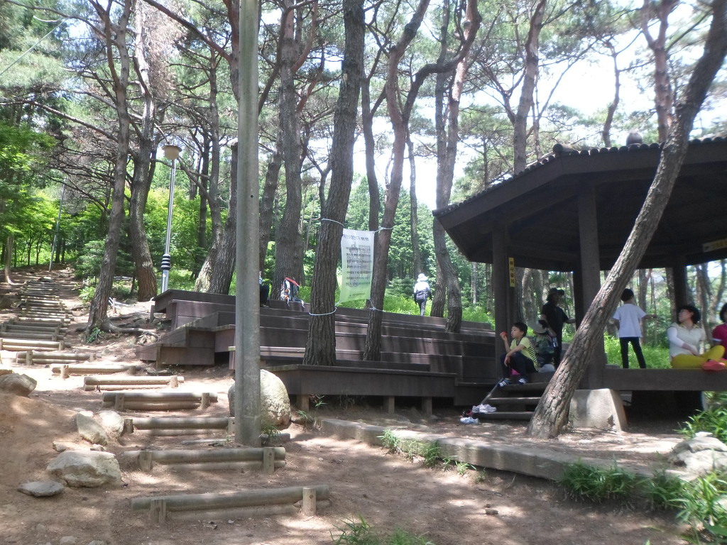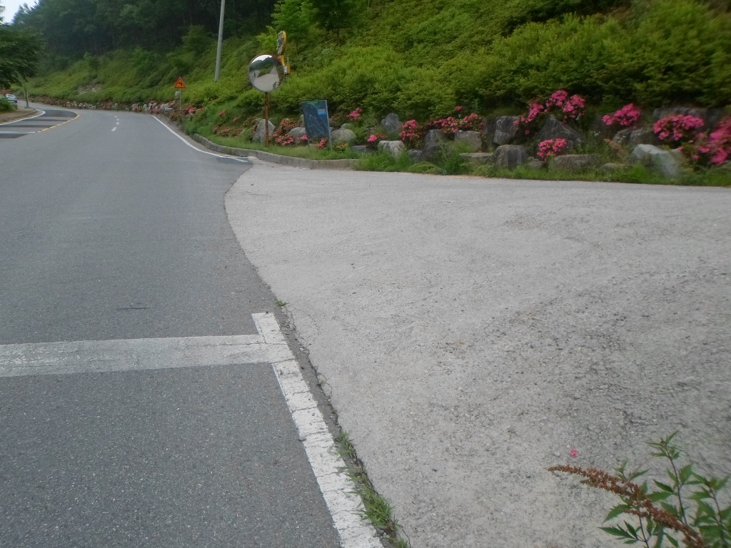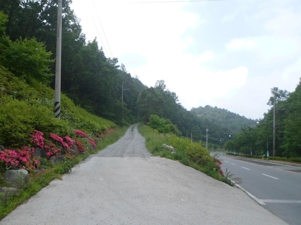 노송숲을 내려서니 2차선도로이고 건너편으로 올라가는 등산로와 정자가 보인다.여기는 4월말 또는 5월초에 온다면 근처가 온통