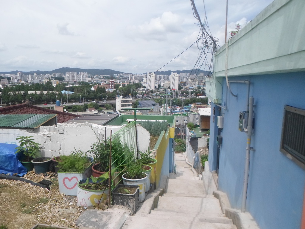 마루 집사이로 보이는 해발177.0m의 조망이 뛰어난 [개금산]도 보인다.다시 '회기'해서 108계단으로 내려가면서 요즘 보기드문 골목