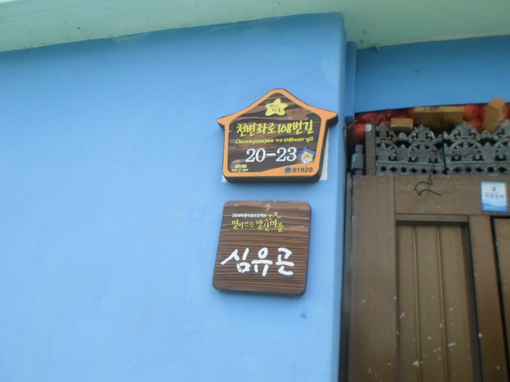 집과 집사이로 보이는 터밭도 보고 마을전체가 [천변좌로108번길]주소판을 보면서 산책하면 시간가는 줄모르고 계단을 내려가면 [발