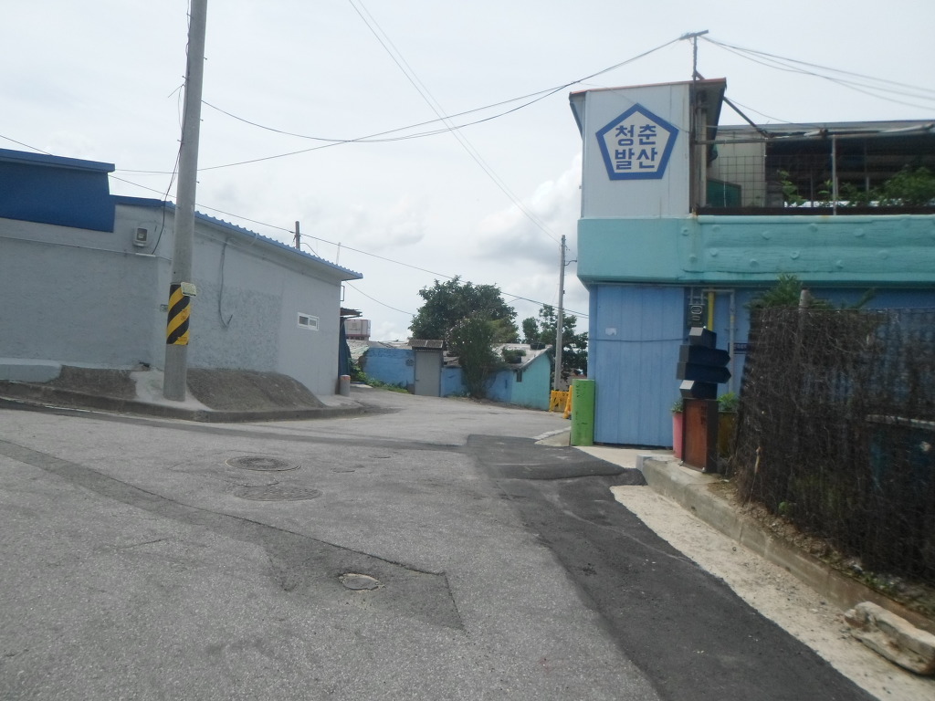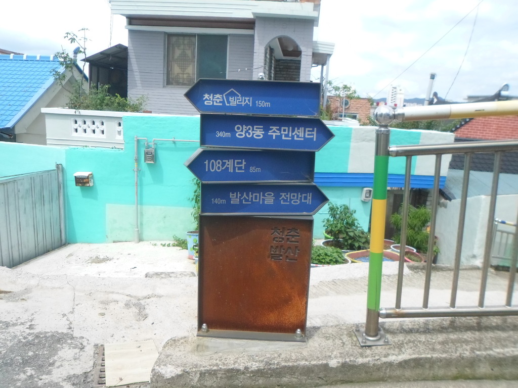 아래그림/[발산상회]앞 주택앞의 삼거리에 있는 이정표다.右측으로 살작 올라가면 전망대이다.