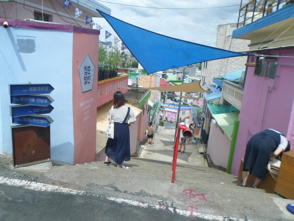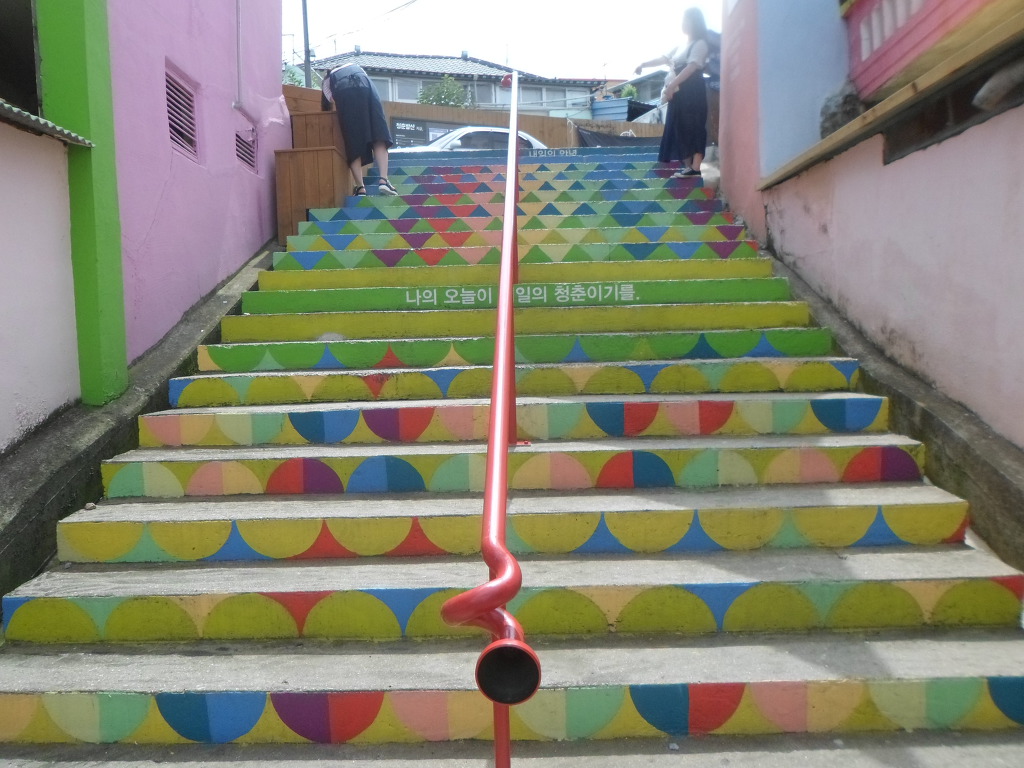 아래그림/골목계단으로 내려간다.젊은 학생차림이 많이 보인다.
