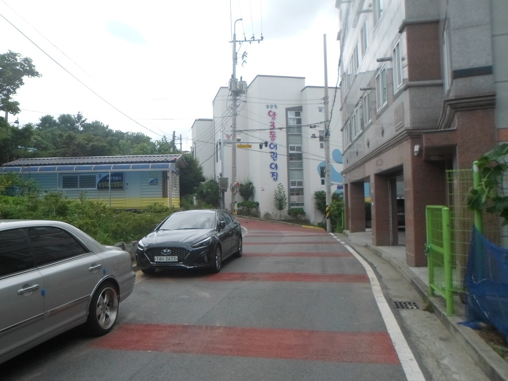 아래그림/버스정유장이다.나는 여기서 내[모터사이클]을 회수하기 위해서 [양3동주민센터]쪽으로 '회기'한다.