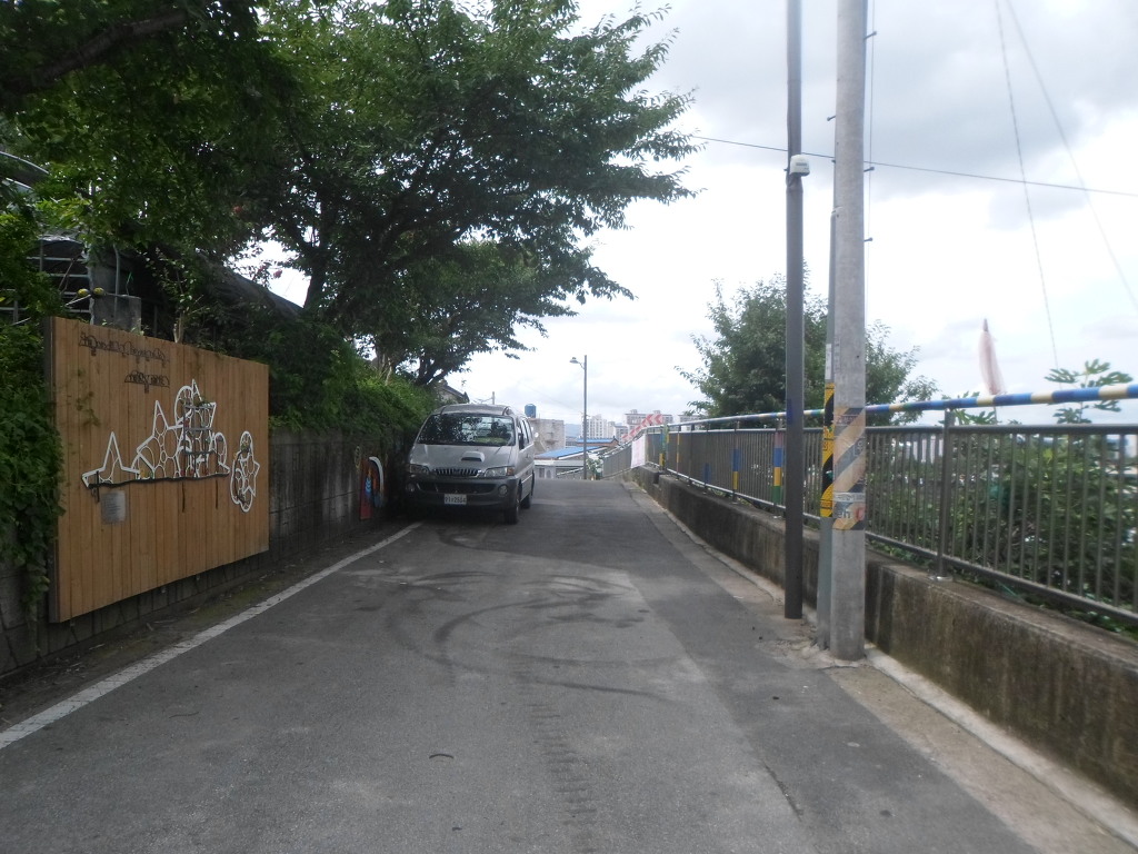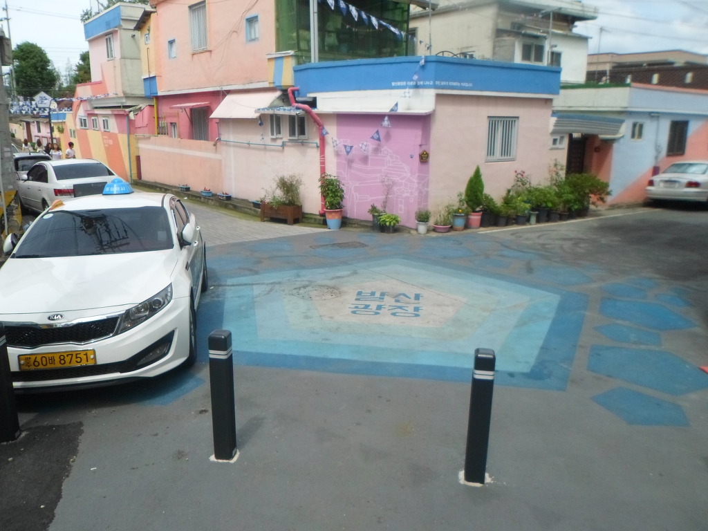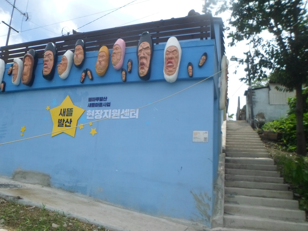 아래그림/삼거리에서 右측 직진쪽의 담벽에 조형물이 보인다.