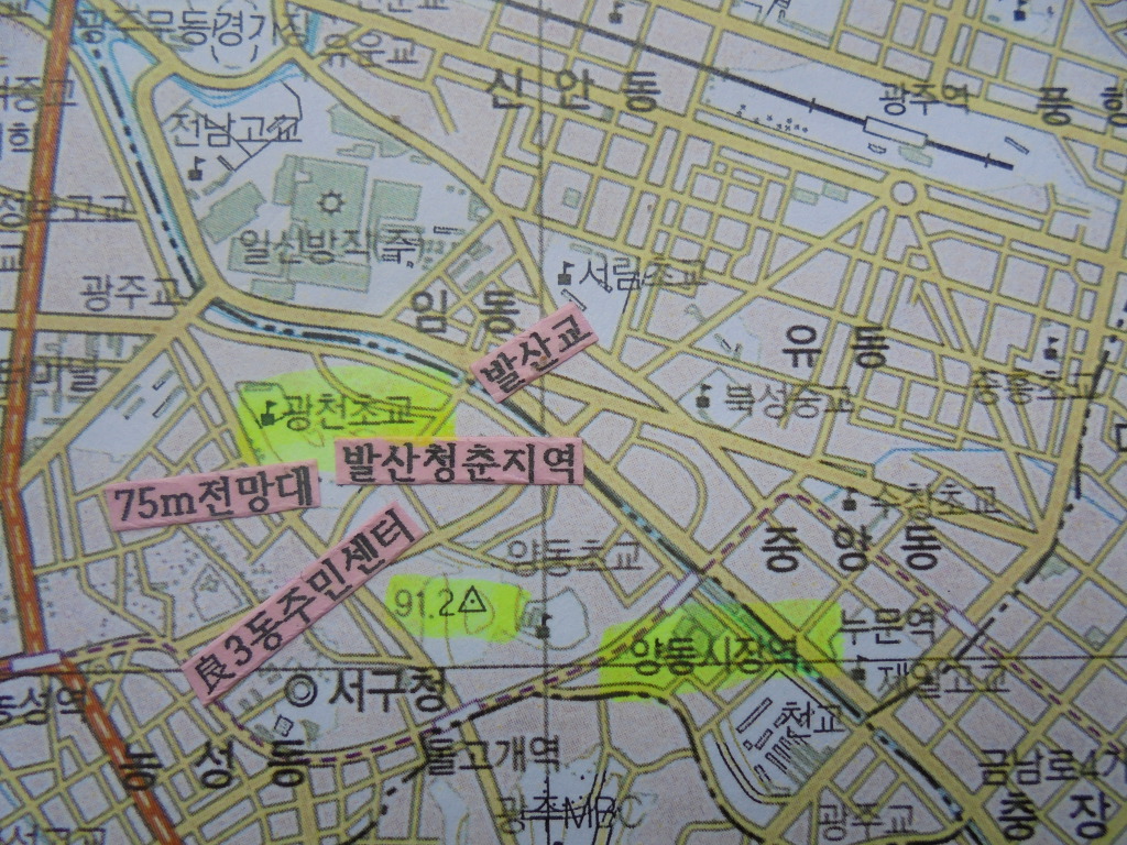 광주광역시/서구청에세 2017년5월29일오후2시30분 새단장 개장을 했다.[광주천좌로]있는 산비탈에 있는 마을을 그냥
