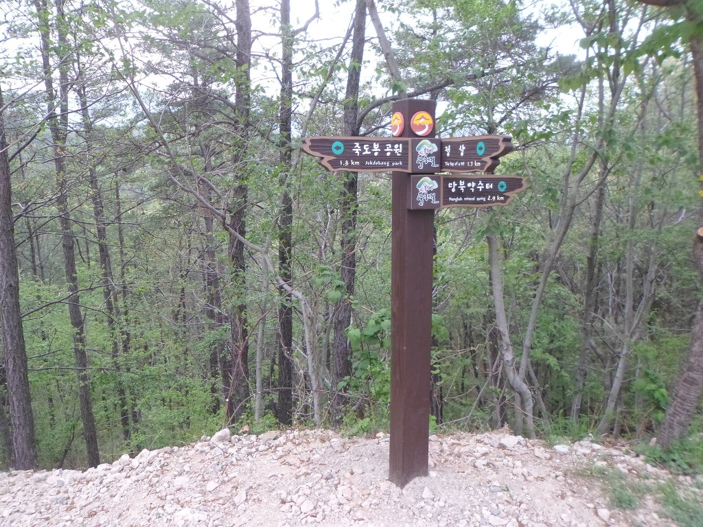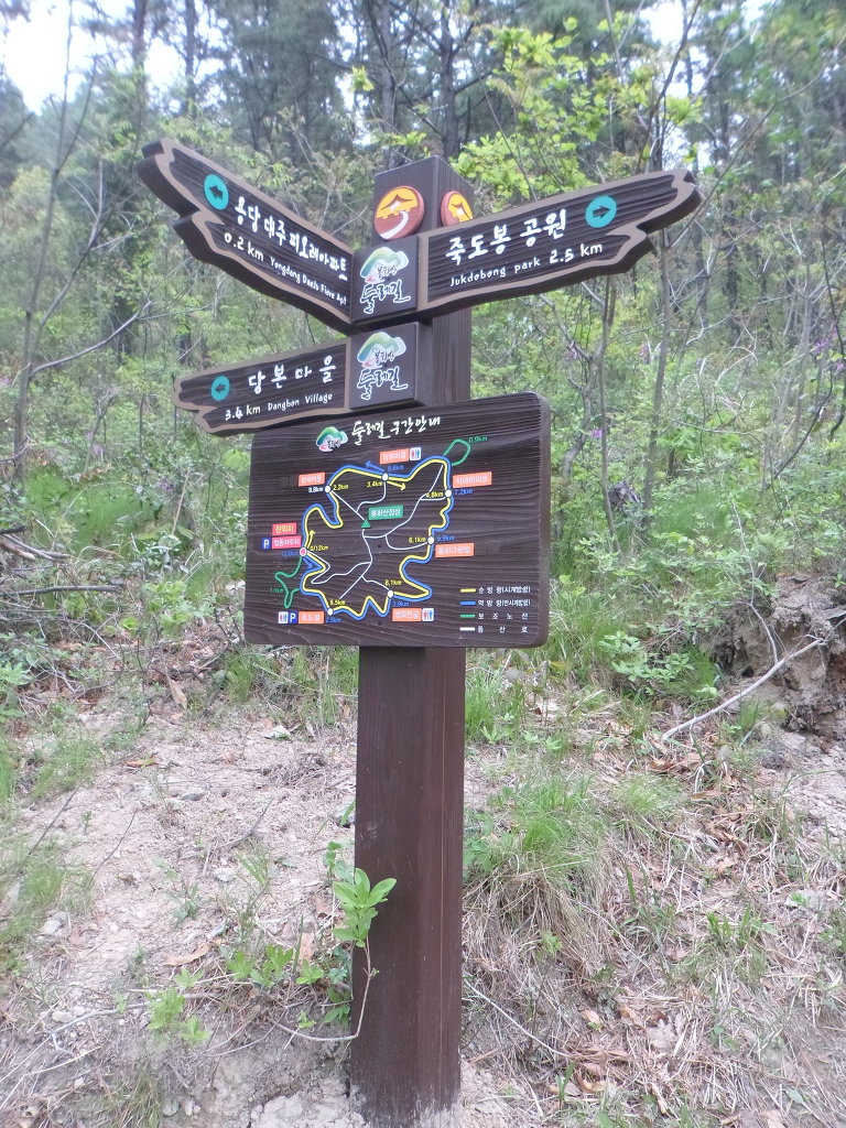 아래그림/左로 [죽도봉광장2.5km]이정표가 보인다.