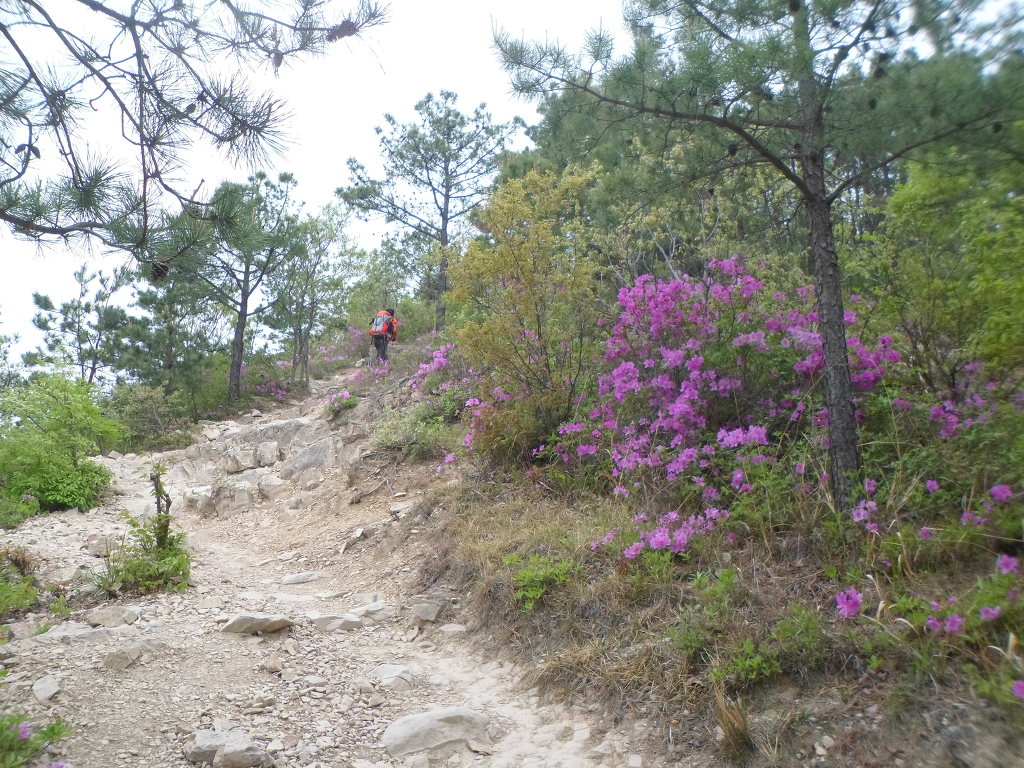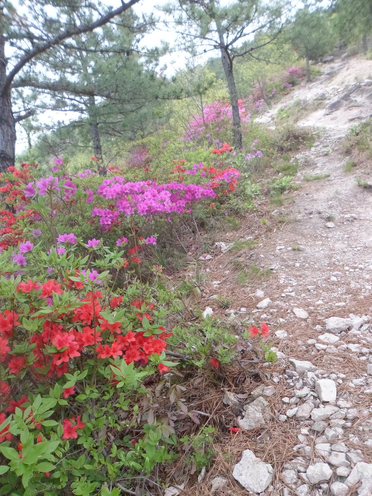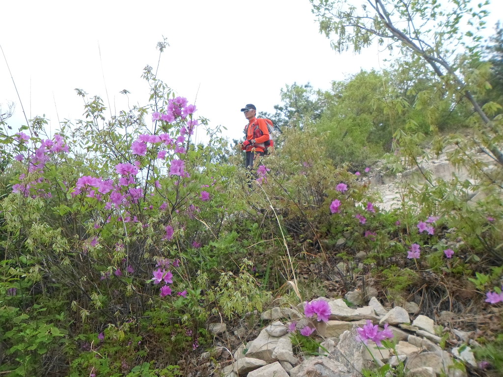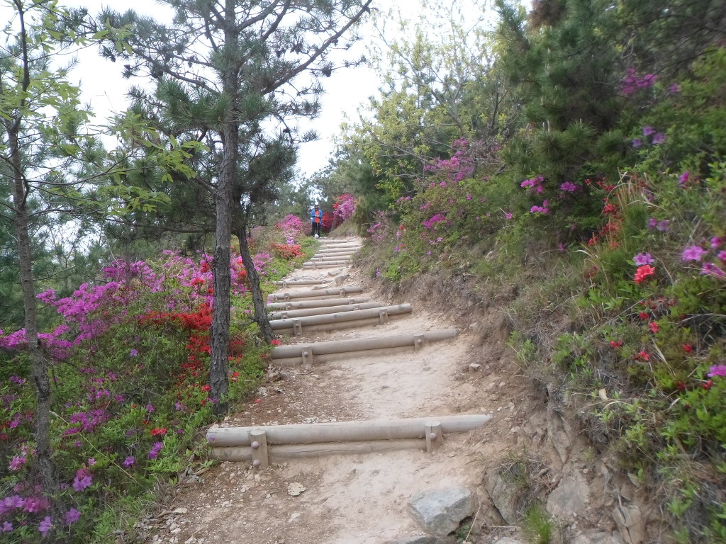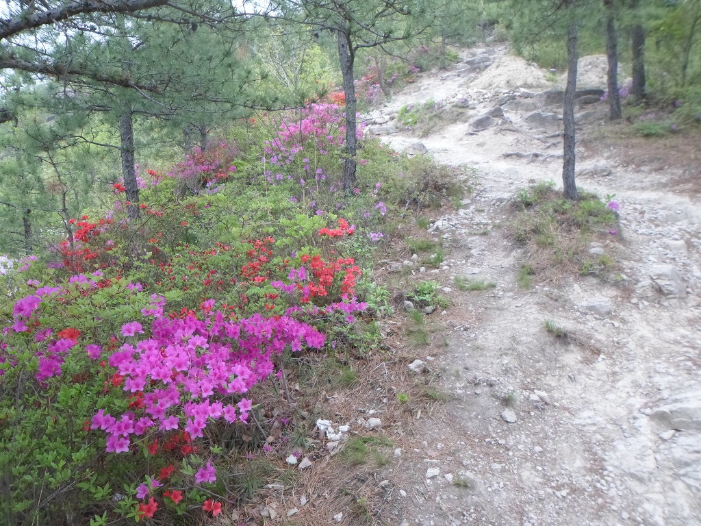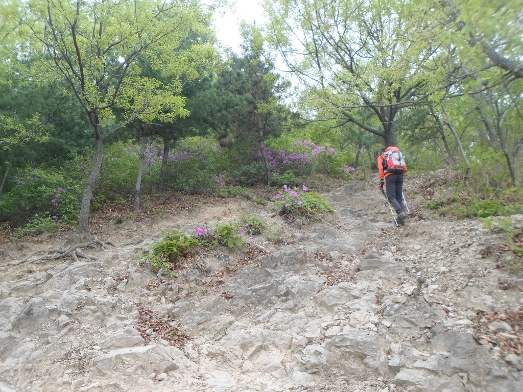 아래그림/이렇게 돌팍길로 올라가나 양쪽의 철쭉꽃들이 피로를 감해 준다.