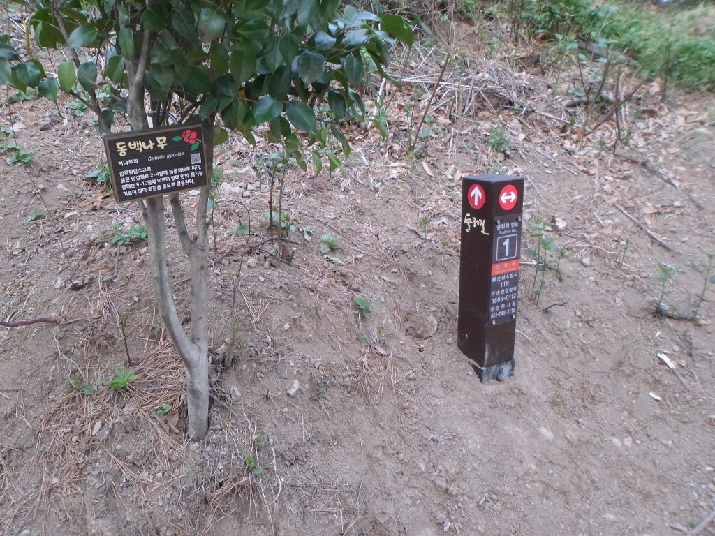 아래그림/출발지 둘레길5거리 이정표 이다.여기서 左측으로 시계방향으로 진행을 할수가 있다.