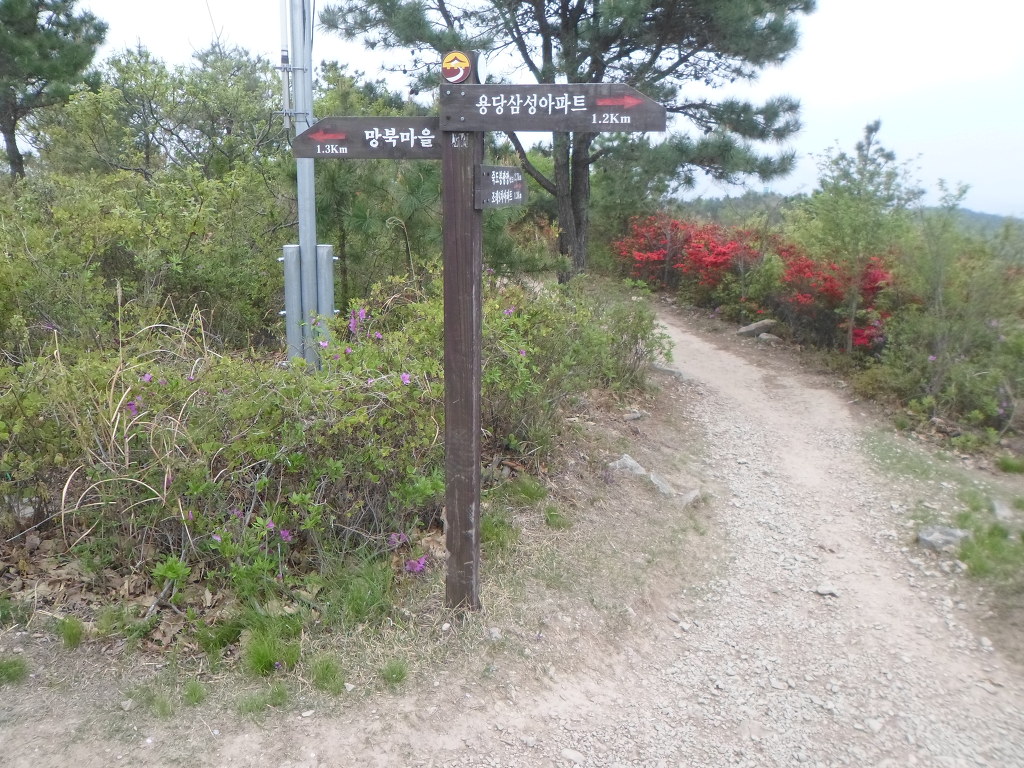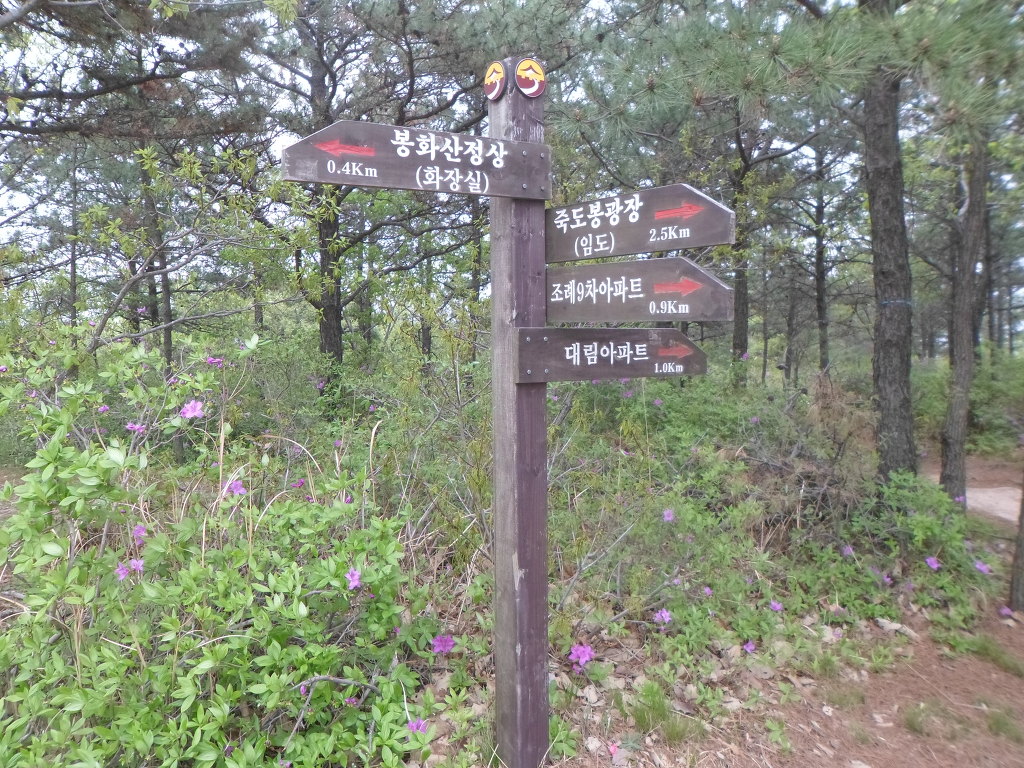 철쭉길로 올라간다.중간에 쉼터와 운동시설지역을 지나 약40분후에는 [봉화산]정상에 도착을 할수가 있다.
