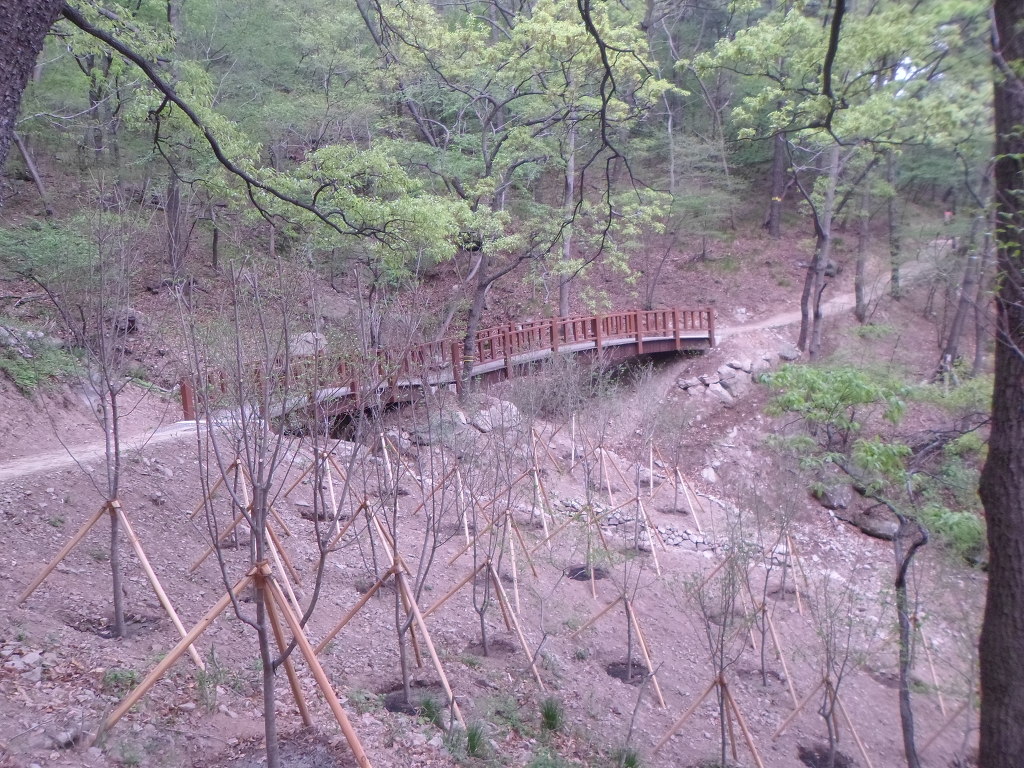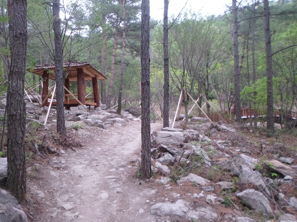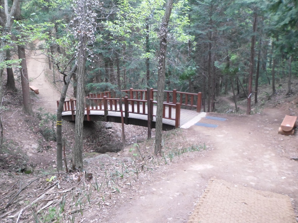 아래그림/쉼터와 나무다리를 건너간다.