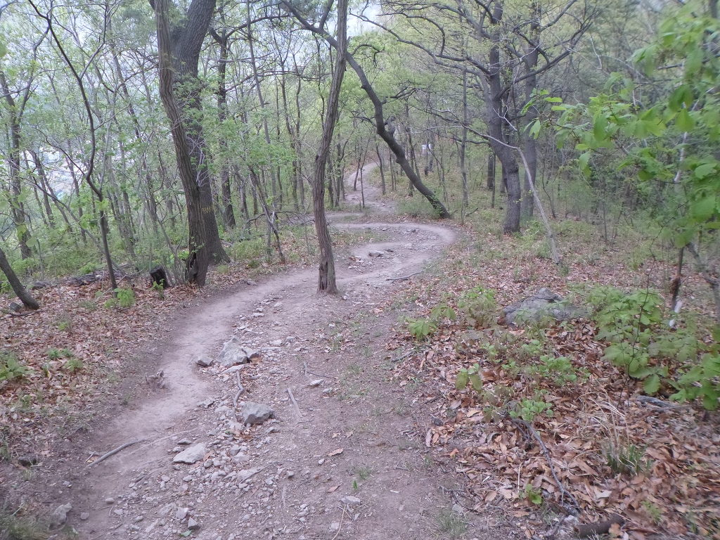 아래그림/꼬불 꼬불 내려가는 산길이다.