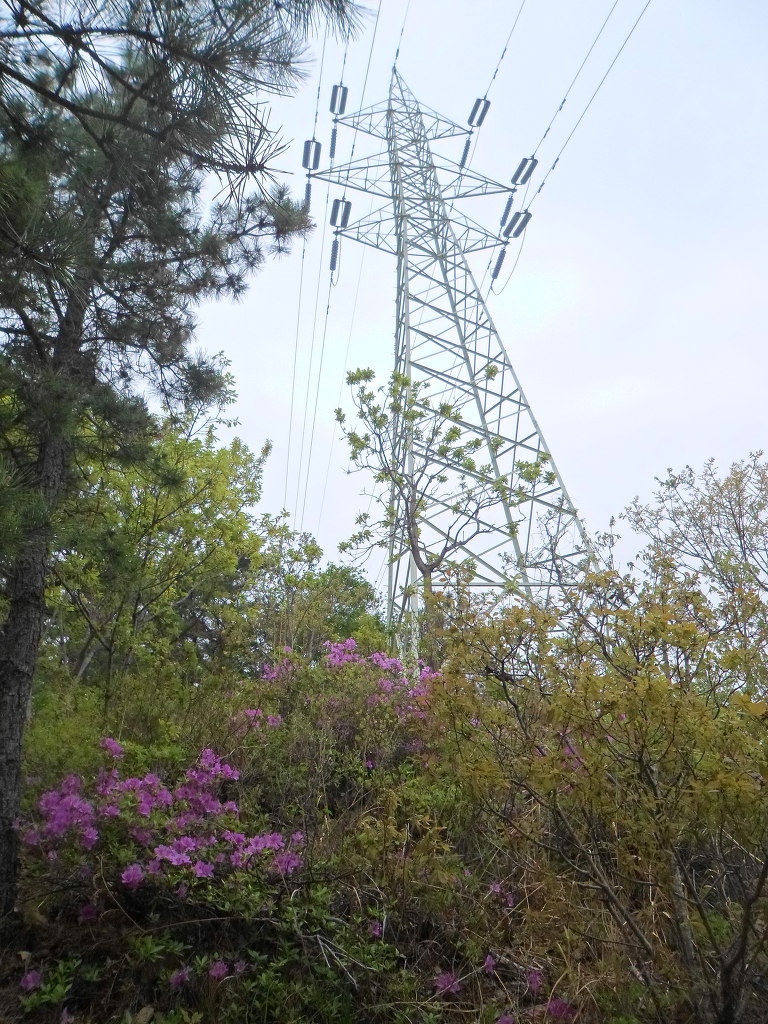 아래그림/[송전탑]을 지나 오르면 해발295봉에 올라서고 경사길은 끝나고 평평한 산등성이길로 [봉화산]까지 이어진다.