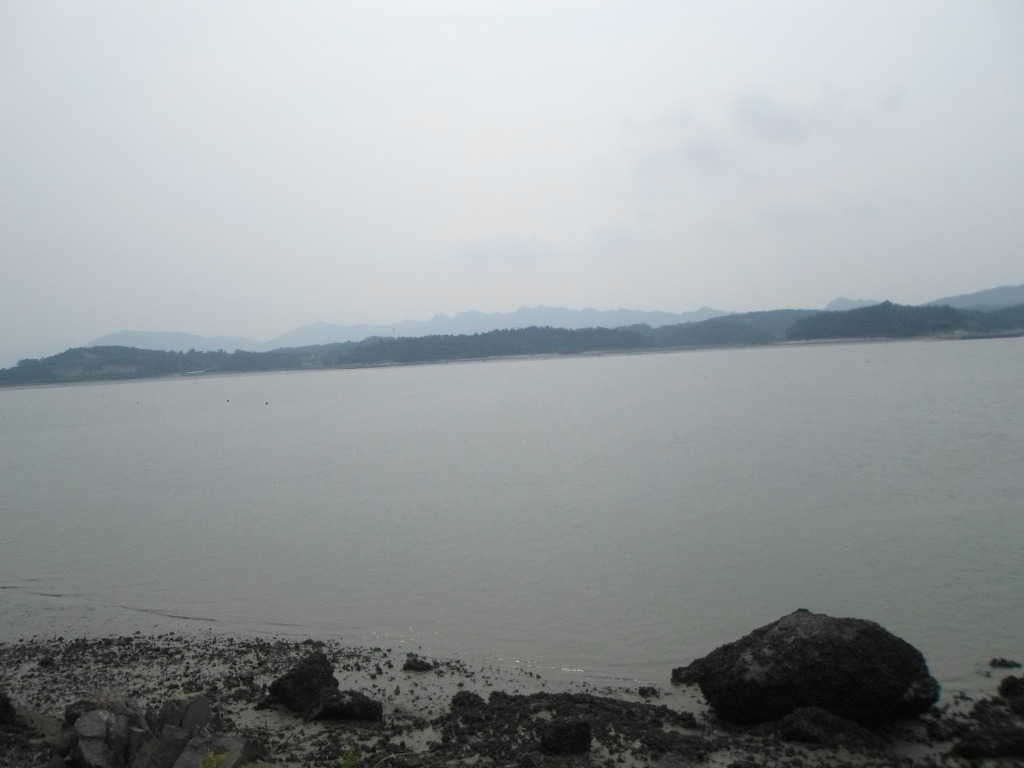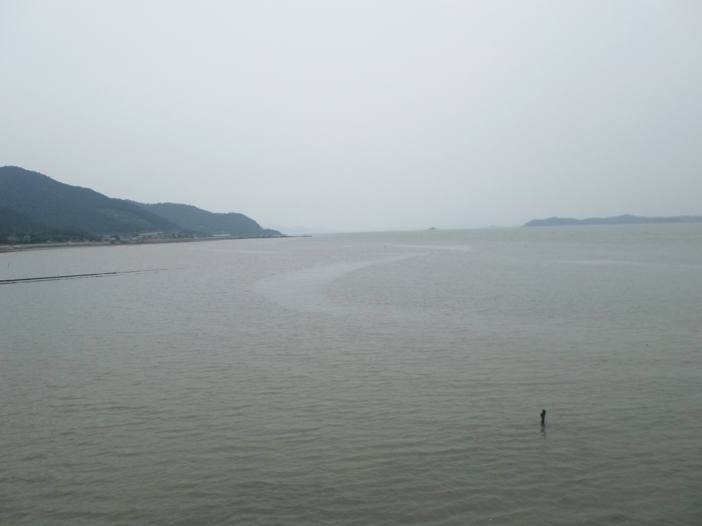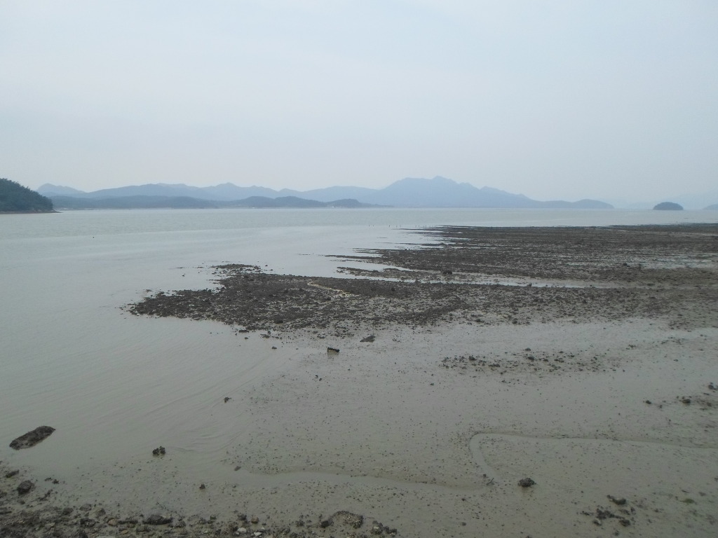 아래그림/다리에서 右측 멀리 박무속에 [주작산-덕룡산]이 보인다.