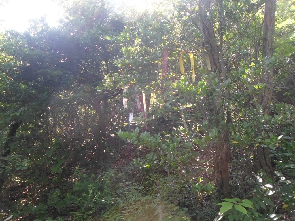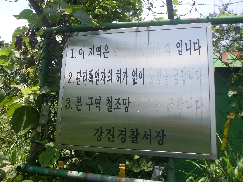 아래그림/폐 軍벙커옆에 있는 피뢰침같은 철파이프3주가 보이는 앞 철망에 부착됀 경고판 이다.이후 길은 잠시 진입길 임도형길로