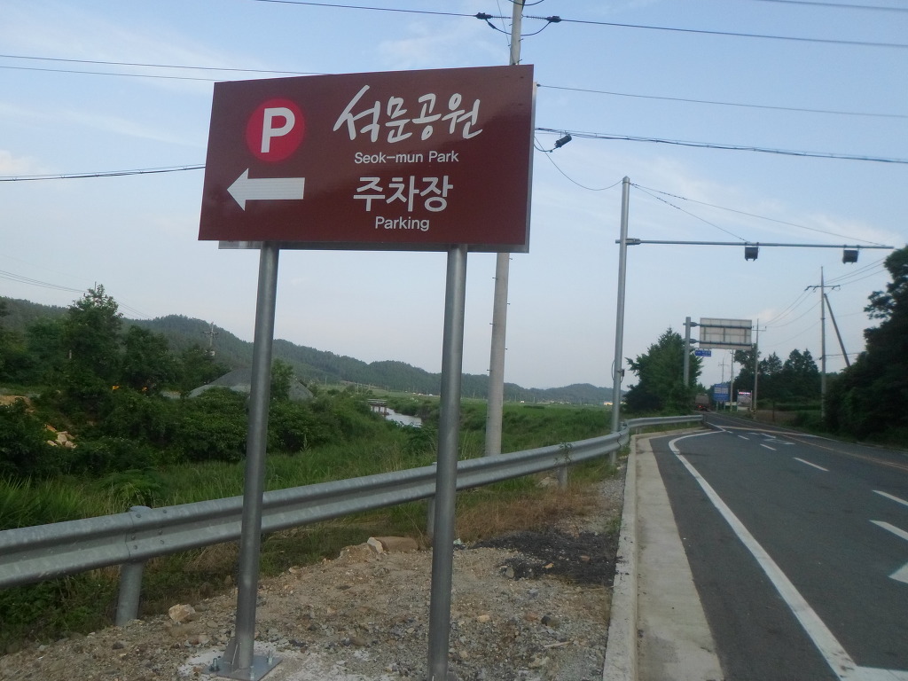 아래그림/[석문공원]주차장이 보인다.여기 주차장에 [석문육교]안내목이 있다고 한다.우리는 실망해서 건너지 않고 바로 군내버스