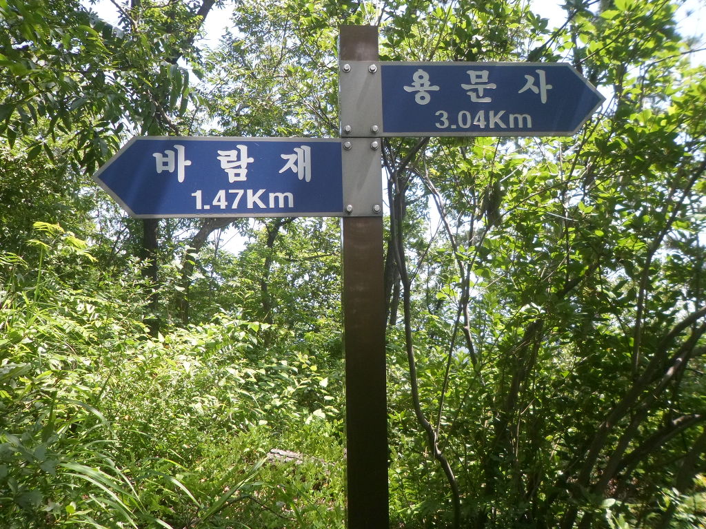 산길은 'A'급정도의 길로 진행을 하니 길 헤맬염려는 없다.[바람재]이정표사거리를 지나 간다.무슨 용도인지 피뢰침같은 철파이프가