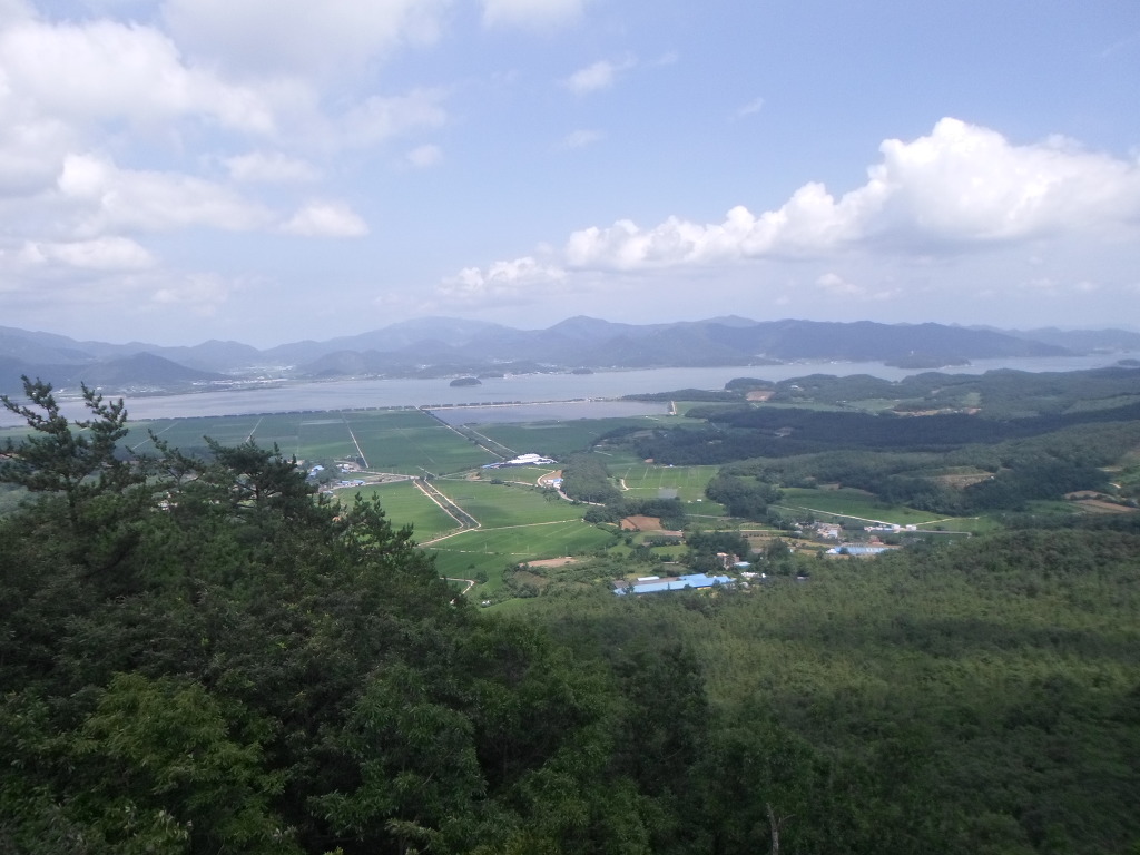 아래그림/진행하다가 정면으로 보이는 석순의 [석문산]이 보인다.