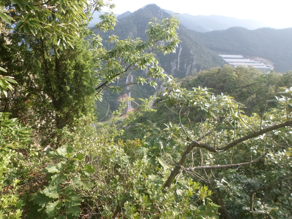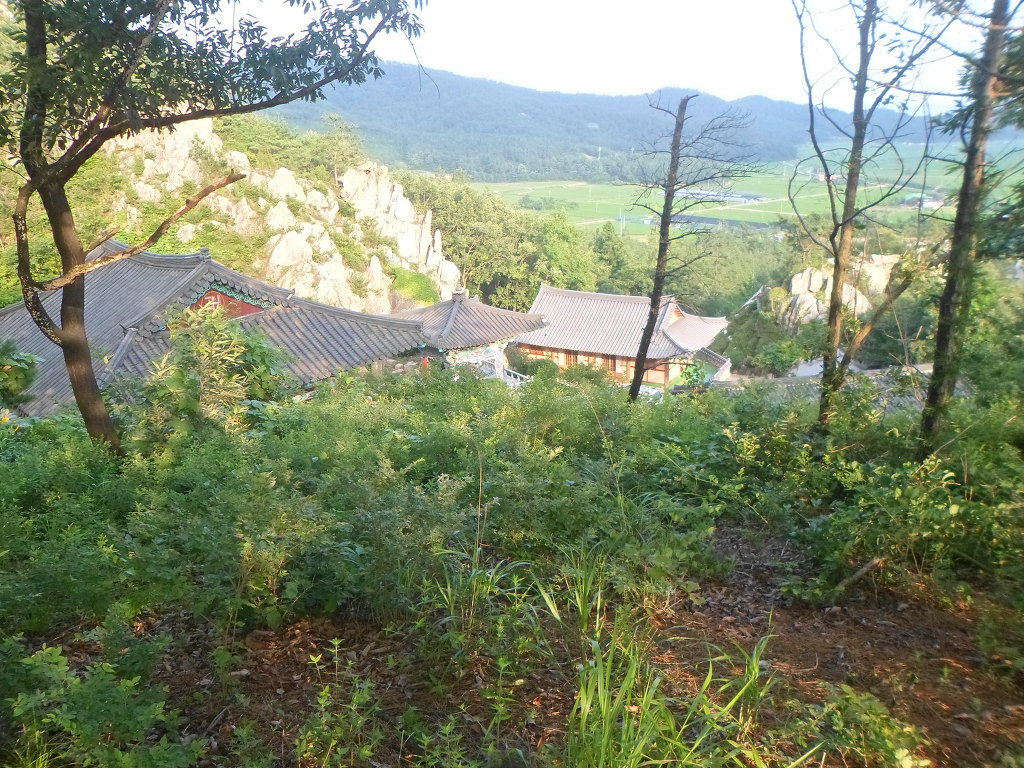 아래그림/용문사 지붕이 보인다.이정표삼거리에서 돌판길 급경사로 여기 용문사까지 내려와야 한다.