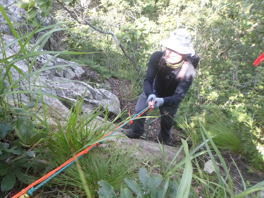 아래그림/항시 준비해 가지고 다닌 로프 꺼내 덪씨우고 간다.빨간색 이다.