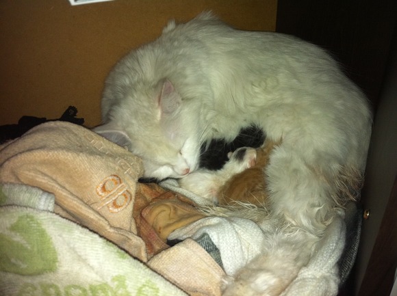 새벽에 다시 보니 세마리를 무사히 출산하고 젖먹이네요^^