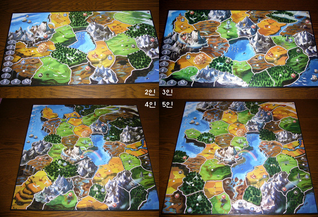 게임 내용물을 보면 2인/3인(양면)보드와 4인/5인(양면)보드.. 이렇게 2개의 보드판이 들어있습니다.