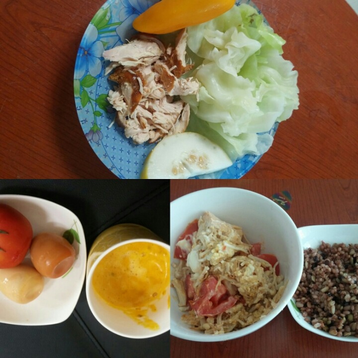 +저녁: 토마토+계란+팽이버섯+치즈 스크램블 잡곡1/3