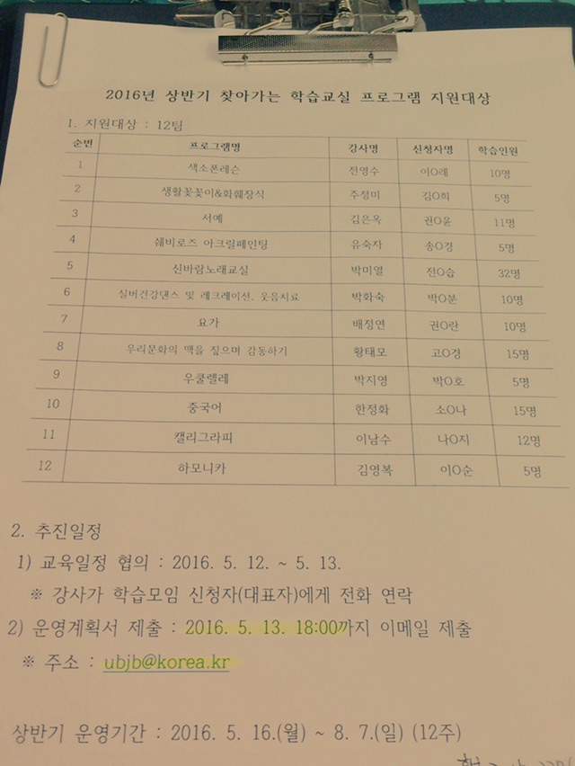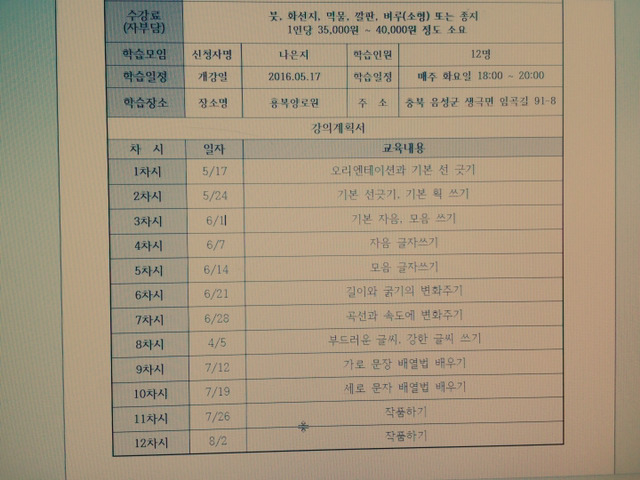 2016년 상반기 찾아가는 학습교실 "캘리그라피(이남수 선생님 - 임정)"가 선정 되었습니다. (음성군청 평생학습관 지원 사업)